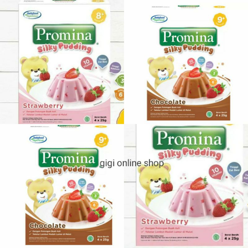 Promo Pengguna Baru Kurir Instan Bebas Ongkir Cicilan 0. Promina SILKY PUDING 8 STRAWBERRY BOX 100g KlikIndomaret Promina Silky Puding 1 Strawberry 100G Warehouse Jakarta 1 Rp 15500 Qty Wishlist Promina silky puding untuk bayi dan anak usia 8-24 bulan. Bisa juga dicampur d.